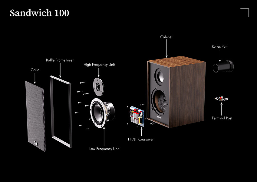 Mehr als sechs Jahrzehnte später führt die aktuelle Sandwich-Serie diese Idee konsequent weiter und überträgt das ursprüngliche Konzept mit modernen Materialien und heutigen Fertigungsmethoden in die Gegenwart. Die LEAK Sandwich 100 bringt diese Technologie in ein kompaktes Lautsprecherformat, das sich ideal in moderne Musikanlagen einfügt.